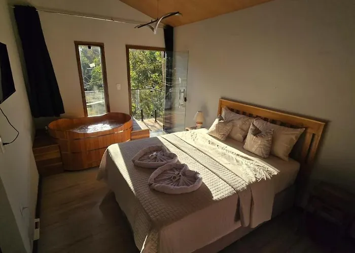 Während des Aufenthalts in der Villa in Caparaó Velho steht Gästen eine voll ausgestattete Küche mit einem Kochfeld zur Verfügung. Das Restaurant Serrano Restaurante e Pizzaria mit südamerikanischen Gerichten liegt 5 Minuten zu Fuß von der Villa Chales Pedras E Madeiras entfernt. Es gibt den Jacuzzi, die einen entspannten Aufenthalt versprechen.