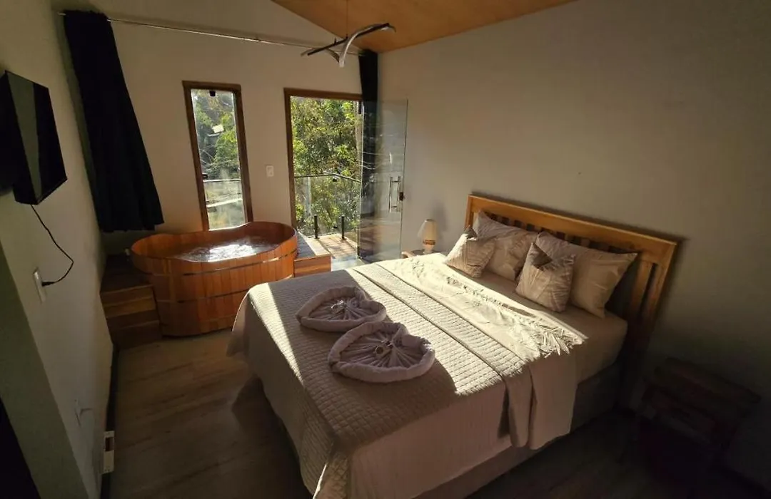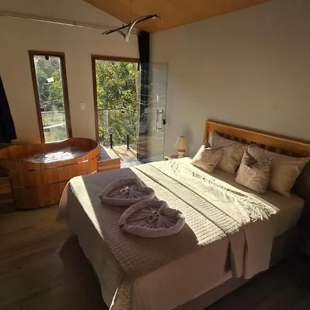Located 4.3 km from the Bonita Waterfall, Chales Pedras E Madeiras Caparao Velho villa entices guests to relax in a Jacuzzi. The lodge includes a free private car park and a patio with views of the mountain.